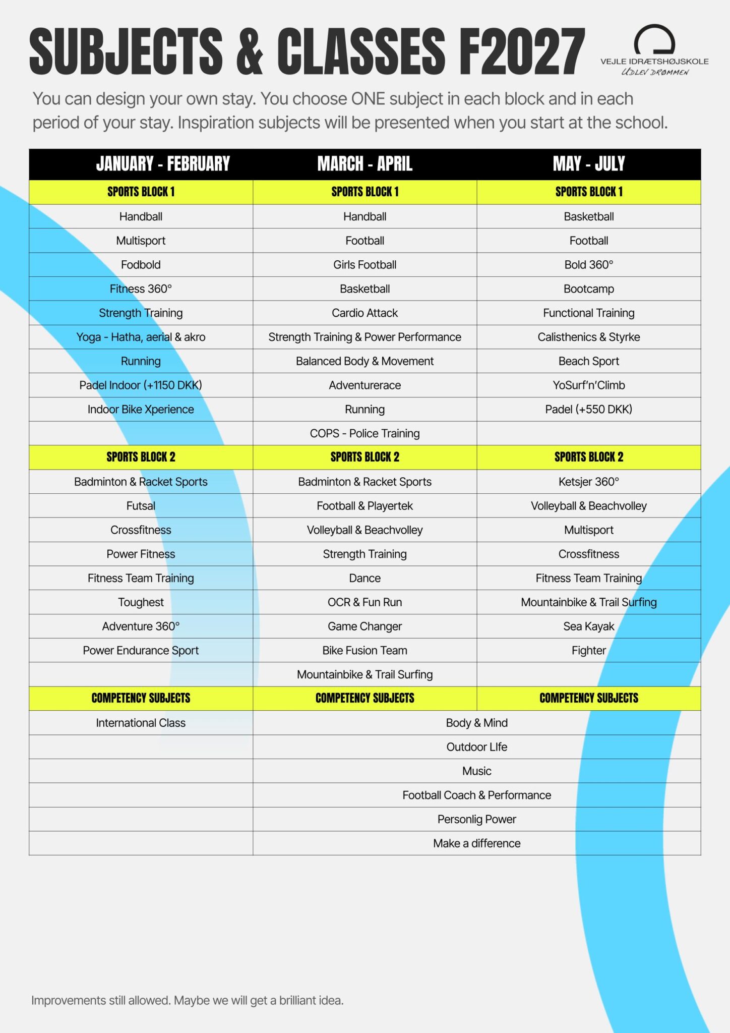 Sweat, sore muscles, laughter, adrenalin, inspirational inputs, eventful trips are guaranteed – and friendships that can last for perhaps a life time. We set the ground for a stay full of play and practise with rich opportunity to challenge yourself, and gain more knowledge about yourself, others and your chosen classes.