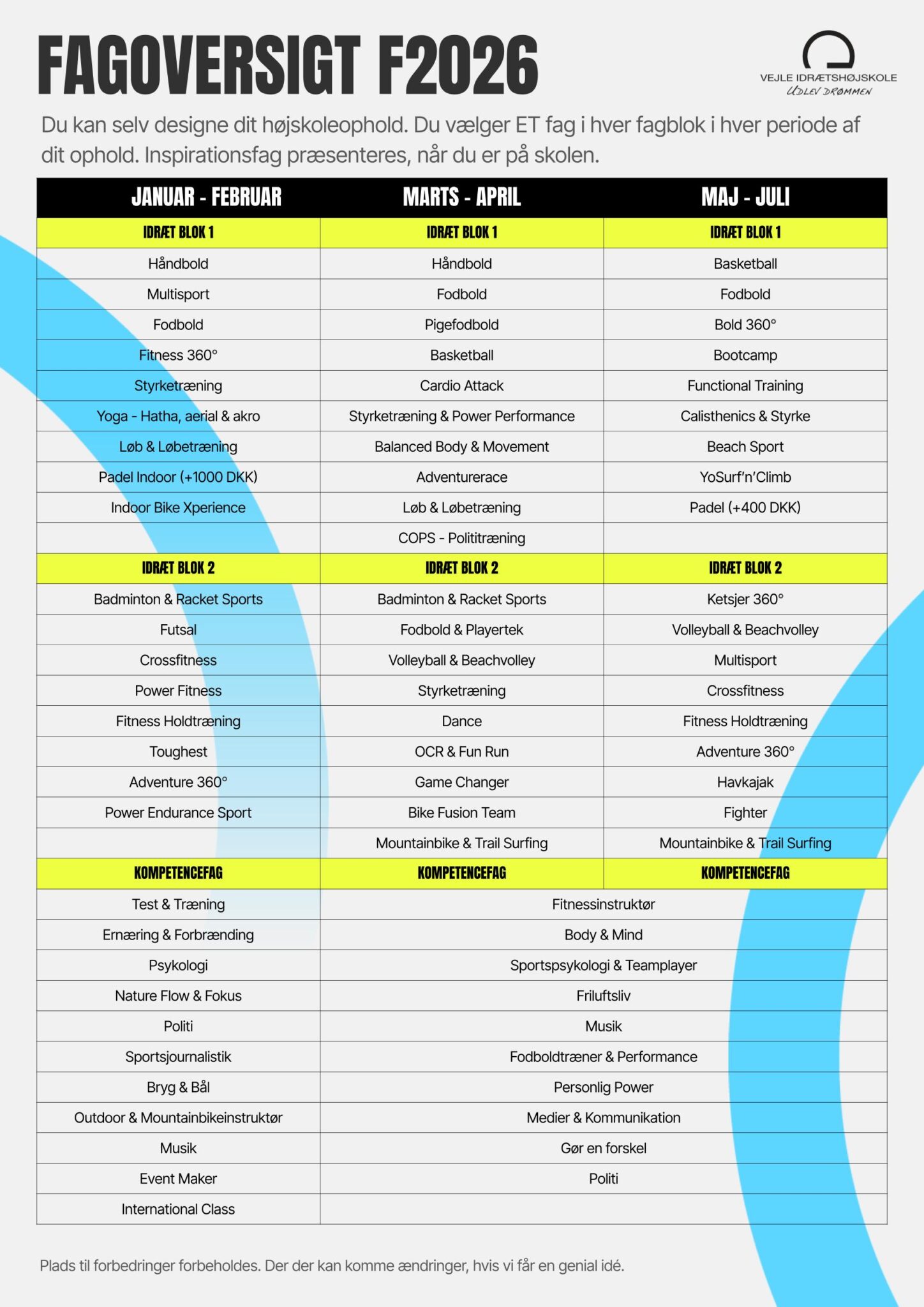 Vi tør godt love dig et uforglemmeligt højskoleophold med masser af idræt, energi, oplevelser, sammenhold og hygge.