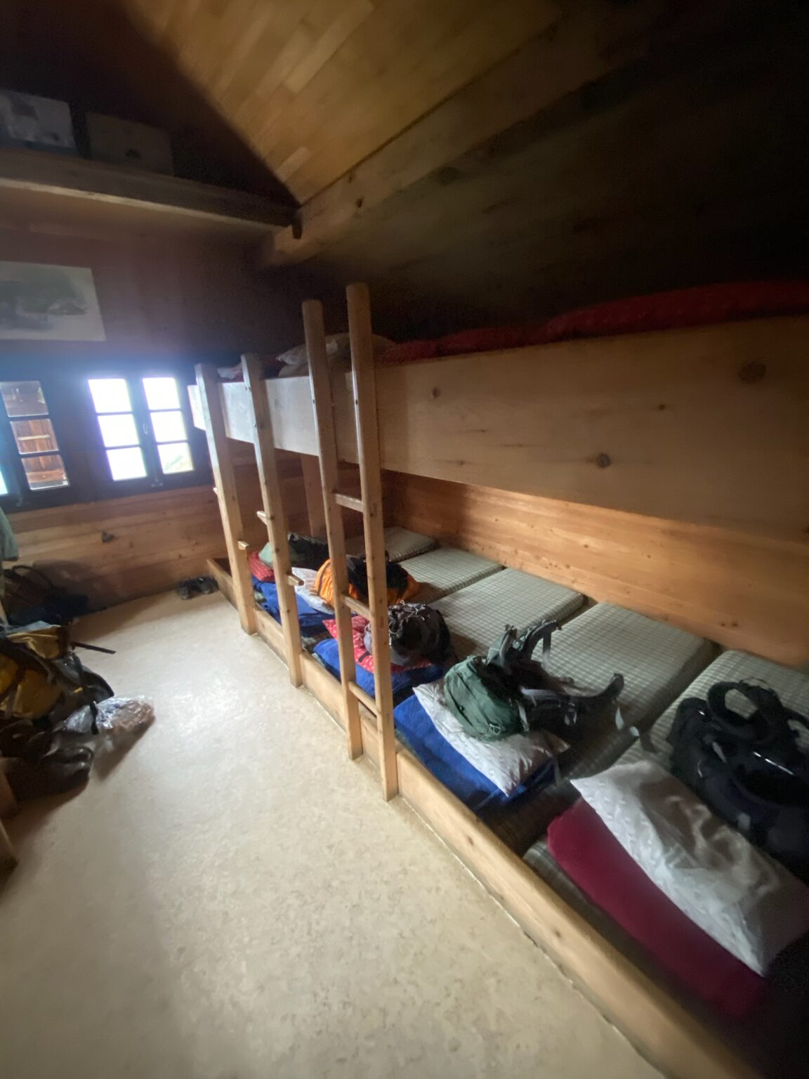 Undervejs på turen kommer vi til at bo i forskellige hytter og gæstehuse. Vi bor tæt, men hyggeligt. Ægte højskolestemning.
