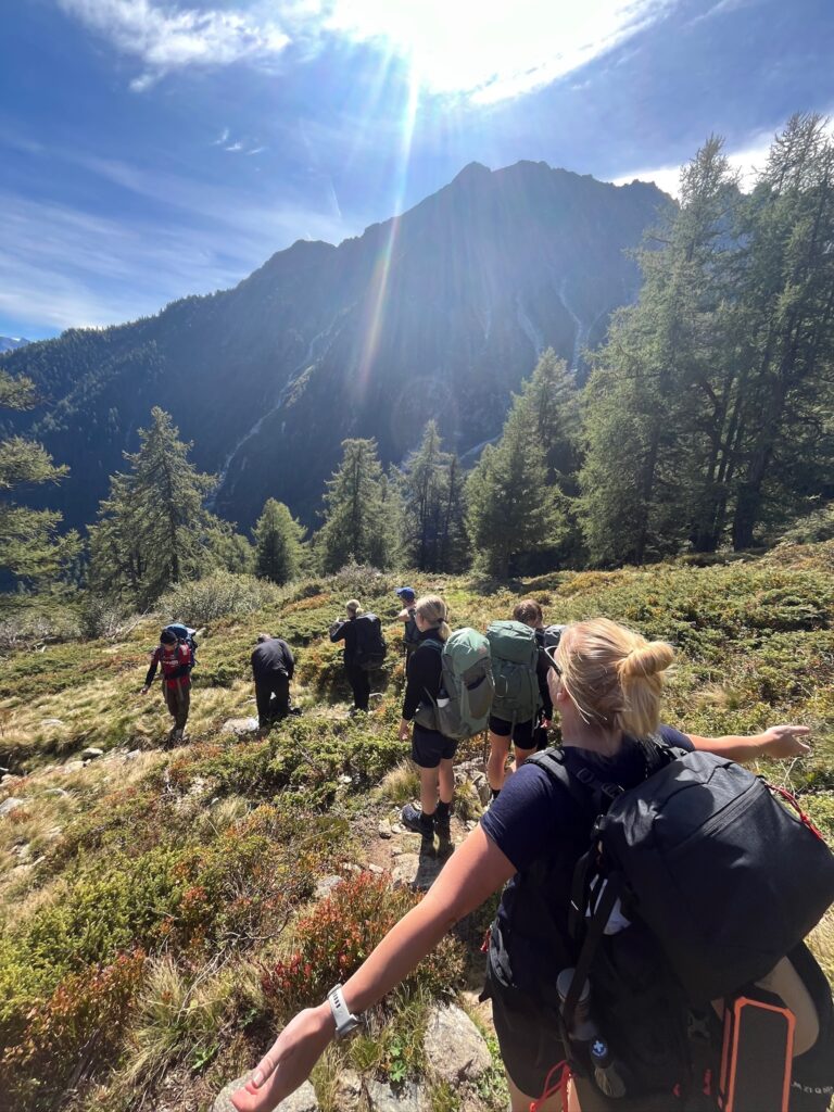 På ruten i Frankrig møder vi en mere udfordrende del af vandringen. De franske bjerge byder på både stejle opstigninger og krævende nedstigninger, som adskiller sig markant fra de mere rolige schweiziske stier. Undervejs skal vi navigere gennem terræn med høje og til tider vanskelige trin, og enkelte steder kræver ruten, at vi benytter stiger for at komme sikkert videre over bjergene. En virkelig fed oplevelse.